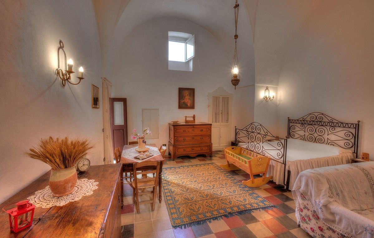 Le due camere matrimoniali, Forno e Soffitta, si trovano, una a piano terra e l’altra a primo piano. La prima, in un’ambientazione originalissima, è stata ricavata nel secentesco forno del villaggio; la seconda, su una scala in pietra a collo di cigno, è una soffitta tra i tetti.